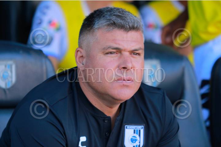 QUERÉTARO, QUERÉTARO, 29ENERO2024.- Mauro Gerk, director Tecnico del Queretaro, durante el juego entre Queretaro y Tigres de la jornada 3 del Torneo Clausura 2024 de la Liga MX, celebrado en el estadio Corregidora con marcador final de empate a uno. FOTO: CESAR GÓMEZ/CUARTOSCURO.COM