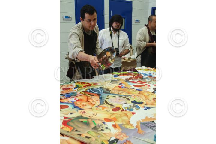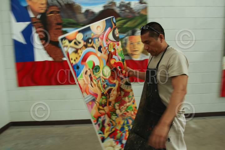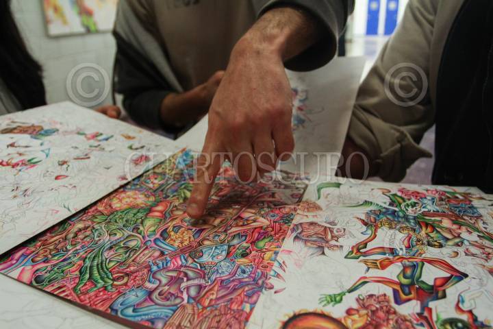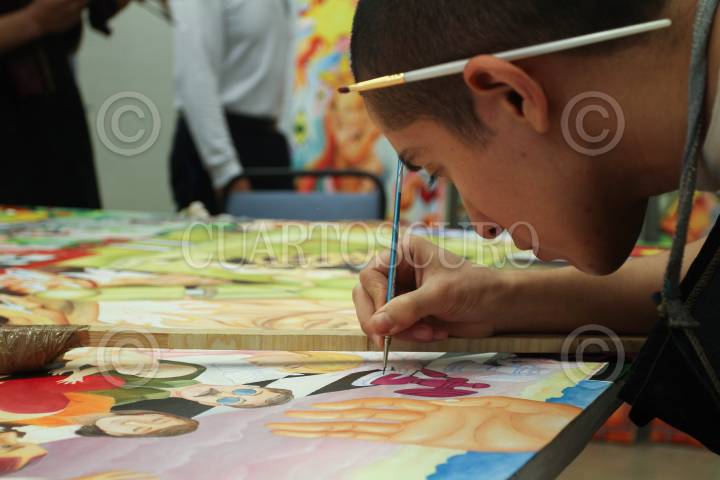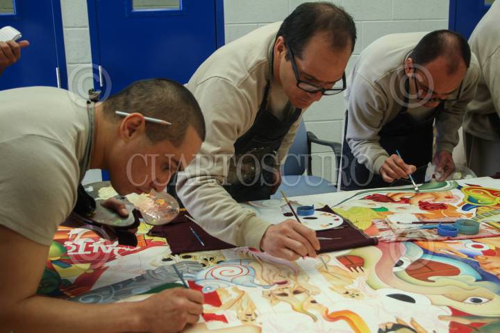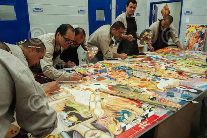 OCAMPO, GUANAJUATO, 20OCTUBRE2015.- En el marco de las actividades de la 43 edición del Festival Internacional Cervantino, el colectivo de arte LiberArte constituido por reclusos del penal de máxima seguridad numero 12 CEFERESO, participo con una exposición de pintura la cual se exhibió dentro de las instalaciones. Los reclusos utilizan el arte y la pintura como medio de liberación mental y relajación dentro de su tratamiento de reinserción a la sociedad. FOTO: ISABEL MATEOS /CUARTOSCURO.COM