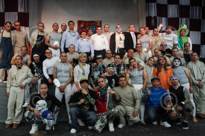 OCAMPO, GUANAJUATO, 20OCTUBRE2015.- En el marco de las actividades de la 43 edición del Festival Internacional Cervantino, el colectivo de arte LiberArte constituido por reclusos del penal de máxima seguridad numero 12 CEFERESO, participo con una puesta en escena titulada Transiciones, proyectando a través del teatro sus propias experiencias y la transición que viven dentro y fuera del penal privados de su libertad y las reflexiones que surgen en su día a día. FOTO: ISABEL MATEOS /CUARTOSCURO.COM