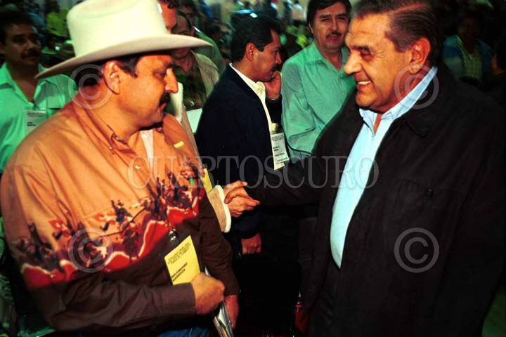 En el balcón de los discidentes, los diputados Francisco Javier Berganza y Maximiano Barbosa que asistieron al inicio formal de campaña del priista Francisco Labastida.