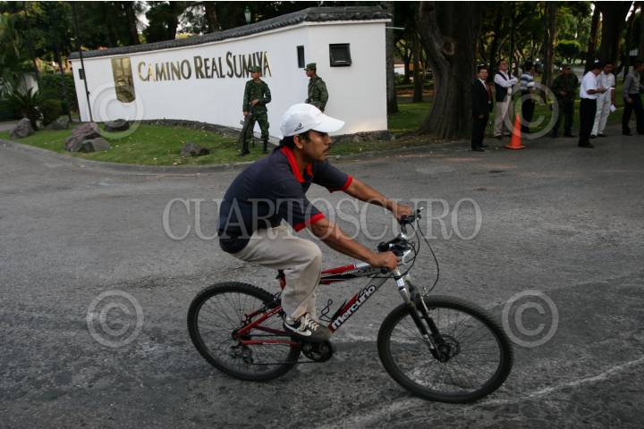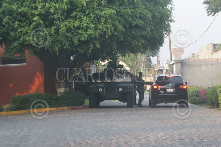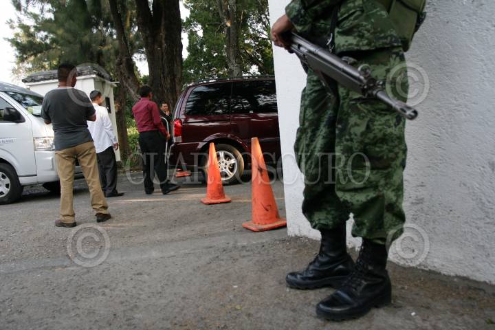 CUERNAVACA, MORELOS; 12DICIEMBRE2009.- Elementos de le estado Mayor, custodian las inmediaciones del Hotel Sumiya, ya que se llevara acabo la boda de Maximiliano Cortazar, Coordinador de Prensa de la Presidencia, y en la cual se espera la llegada del jefe del Ejecutivo. FOTO: GUILLERMO PEREA/CUARTOSCURO.COM