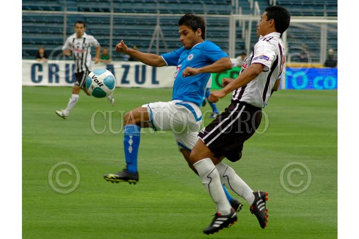 MÉXICO, D.F., 03ABRIL2010.- Maximiliano Biancucchi de la Maquina Celeste del Cruz Azul pelea el balón durante el encuentro en contra de los gallos del Queretaro; partido de la jornada 13 del torneo Bicentenario del futbol mexicano que se celebro en el estadio Azul y que gano la maquina celeste 1 gol a 0. FOTO: RODOLFO ANGULO/CUARTOSCURO.COM