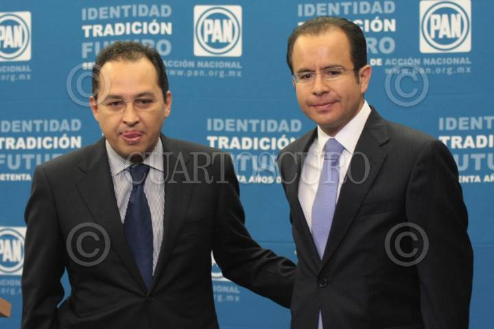 MÉXICO, D.F., 19JULIO2010.- Maximiliano Cortaza fue designado como vocero del PAN; anteriormente ocupo el puesto de coordinador de comunicación social en Presidencia de la República. En la imagen lo acompaña Cesar Nava dirigente nacional del partido en mención. FOTO: MARCO POLO GUZMÁN HERNÁNDEZ/CUARTOSCURO.COM