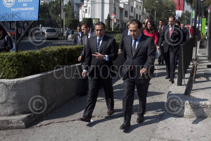 MÉXICO, D.F., 06DICIEMBRE2011.- Ernesto Cordero, aspirante a la Presidencia de la República por el PAN, y Maximiliano Cortázar, coordinador de su precampaña, al salir del World Trade Center en donde presentó su plan en Seguridad Ciudadana Integral y Justicia FOTO: MOISÉS PABLO/CUARTOSCURO.COM