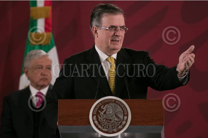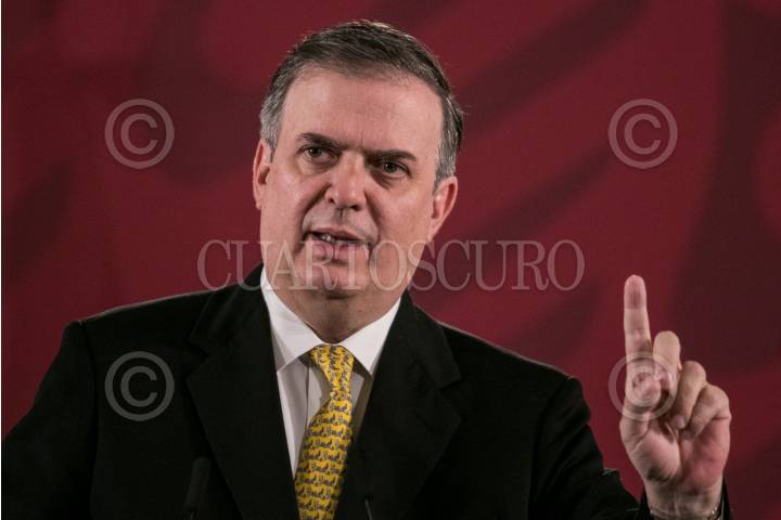 Marcelo Ebrard, secretario de Relaciones Exteriores, durante la conferencia para presentar el informe.