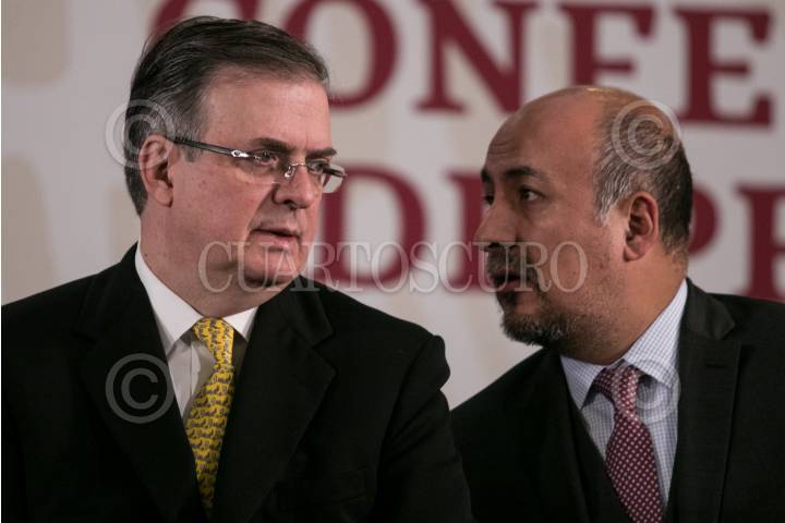 Marcelo Ebrard, secretario de Relaciones Exteriores, y Maximiliano Reyes, subsecretario para América latina y el Caribe, durante la conferencia.
