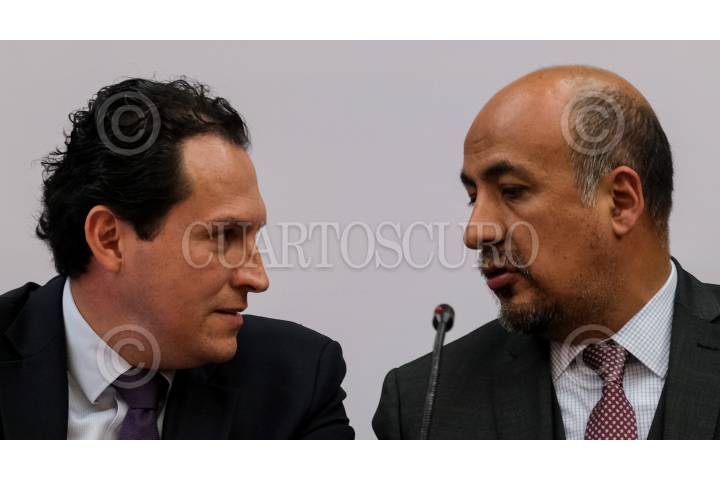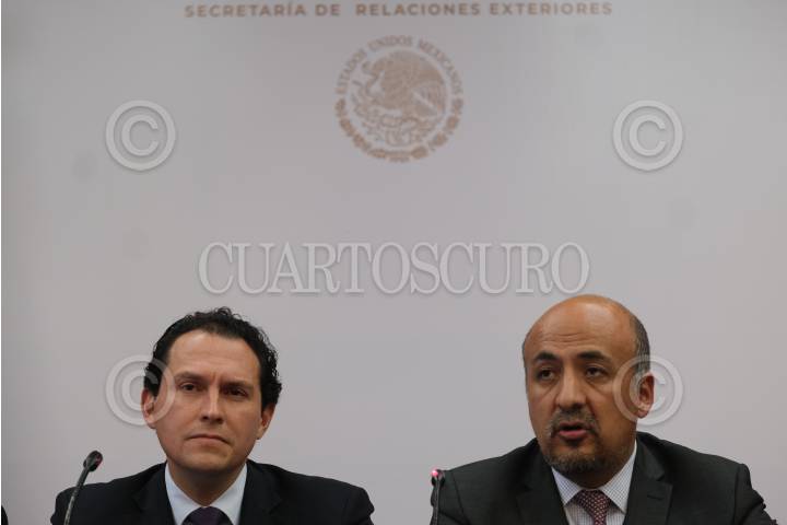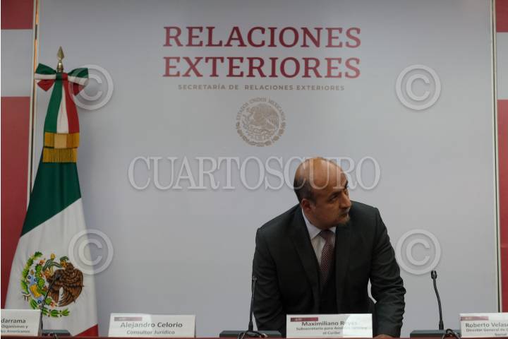 Alejandro Celorio, consultor jurídico, y Maximiliano Reyes, subsecretario para América Latina y el Caribe, ofrecieron una conferencia de prensa en la que el subsecreario propusó una reunión en un país intermedio geográficamente con el Karen Longaric