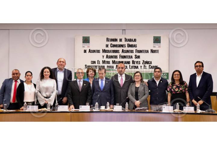 CIUDAD DE MÉXICO, 15JULIO2019.- Porfirio Muñoz Ledo, presidente de la mesa directiva en la Cámara de Diputados; Maximiliano Reyes Zuñiga, subsecretario para América Latina y el Caribe y la diputada Julieta Vences Valencia, durante la reunión de asuntos migratorios, asuntos Frontera Norte y asuntos Frontera Sur, la cual fue relaizada en la Cámara de Diputados. FOTO: CUARTOSCURO.COM