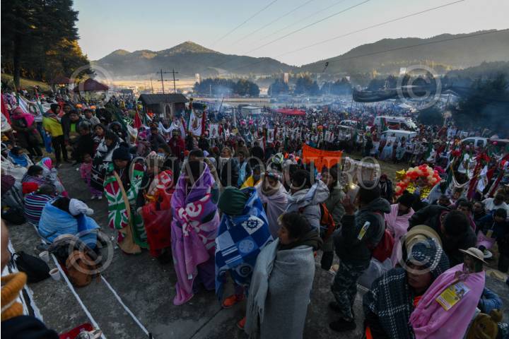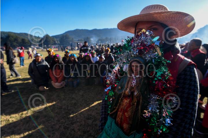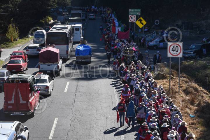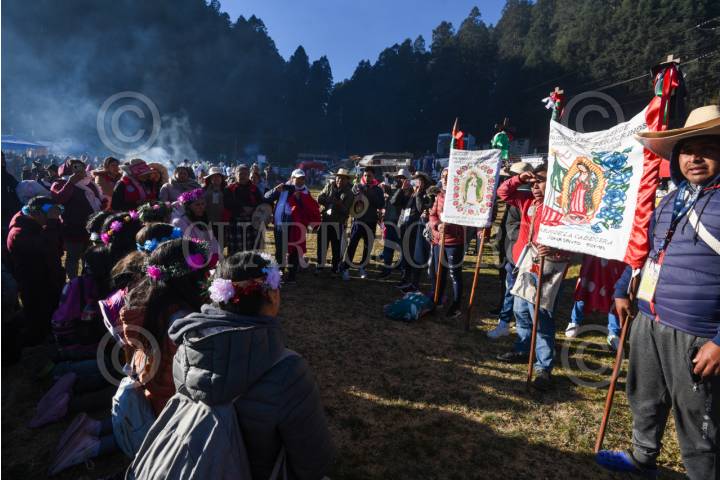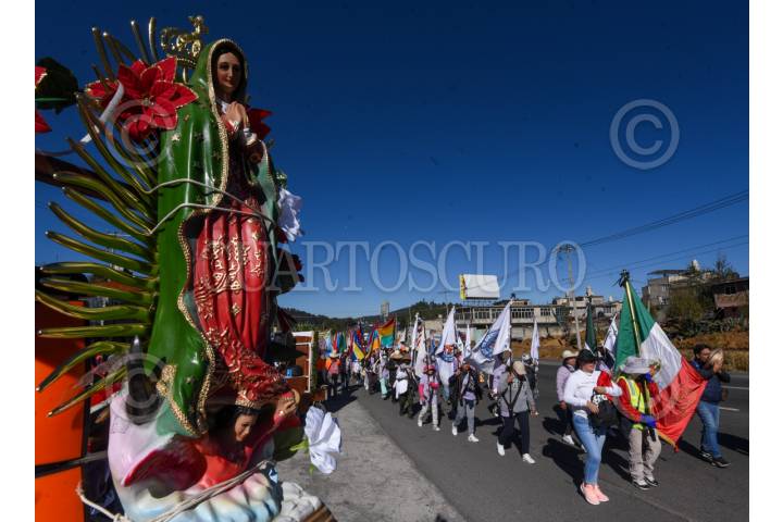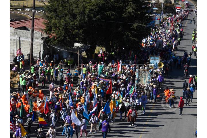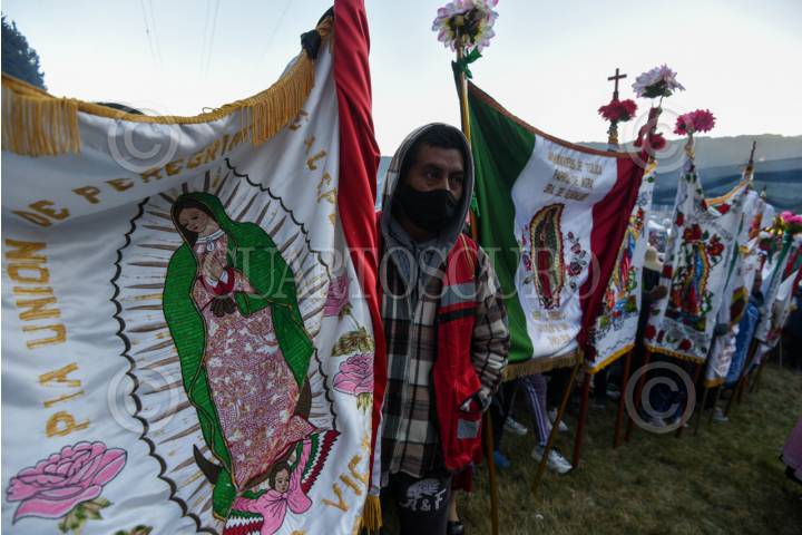 OCOYOACAC, ESTADO DE MÉXICO, 20FEBRERO2024.- Continúan su camino peregrinos que se dirigen a la Basílica de Guadalupe para su cita anual con la Virgen Morena, los asistentes Peregrinación número LXXXVI al Tepeyac pernoctaron en La Marquesa y a muy temprana hora escucharon misa encabezada por el Obispo Auxiliar de Toluca Maximino Martínez Miranda, y emprendieron su camino a la CDMX. FOTO: CRISANTA ESPINOSA AGUILAR /CUARTOSCURO.COM