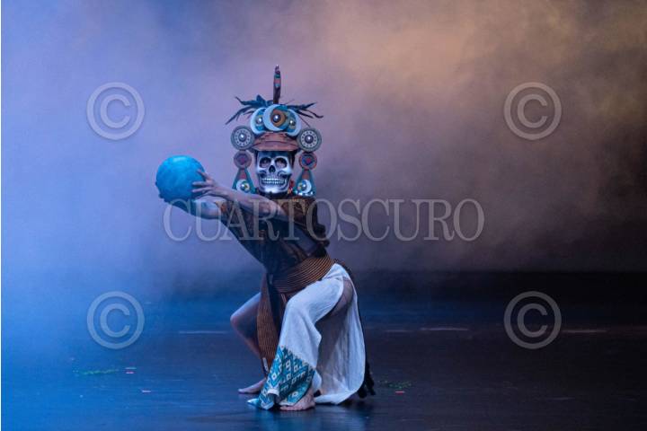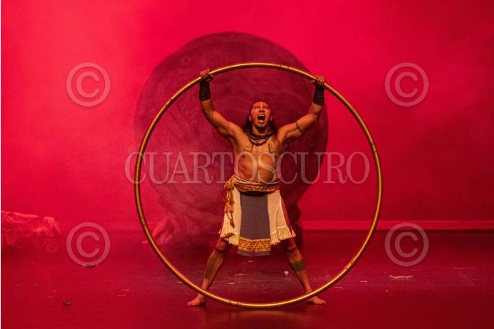 CIUDAD DE MÉXICO, 27 DE JULIO DE 2025.- Con localidades agotadas, Salto mortal al Xib’alb’a, de la compañía Tránsito Cinco Artes Escénicas, se presentó en el Teatro de las Artes del Centro Nacional de las Artes (Cenart), institución de la Secretaría de Cultura del Gobierno de México. La obra integró elementos de la cosmogonía maya con acrobacias aéreas, danza y escenografía. Dirigida por Jorge Díaz Mendoza y con producción ejecutiva de Jessica González, la pieza se basa en relatos del Popol Vuh, libro considerado sagrado por el pueblo maya, particularmente en la historia de los gemelos Ixb’alanke y Hunahpú, quienes enfrentan a los señores del Xib’alb’a –el inframundo maya– en un juego de pelota asociado con el ciclo de la vida. FOTO: SECRETARÍA DE CULTURA / CUARTOSCURO.COM