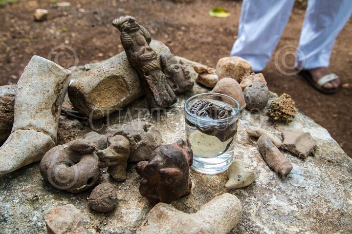 El sacerdote maya Felipe Poot cuenta cómo obtuvo piedras mayas, él las considera piezas valiosas que provinieron de la selva como regalo de los aluxes: “adentrándome en la selva y cerca de un bejuco, encontré varias figuras como el mono, el cristal, el sacerdote maya, el zastun, entre otras piedras. En mi caminar tropecé y me detuve en una gran piedra y al moverla los hallé".