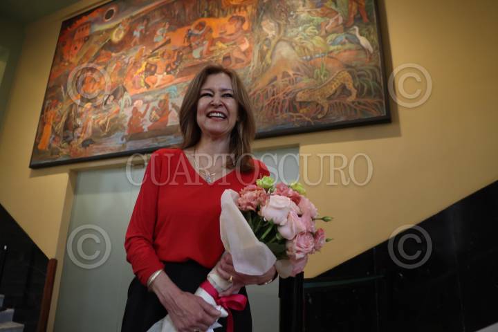 CIUDAD DE MÉXICO, 15AGOSTO2024. Llucina Jiménez, Directora General del INBAL durante la ceremonia en que se integro la pintura mural “Xibalbá, el inframundo de los mayas”, a la colección permanente del Área de Murales del Palacio de Bellas. FOTO: EDGAR NEGRETE LIRA/CUARTOSCURO.COM