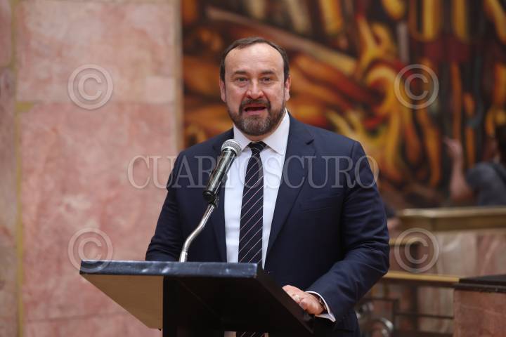 CIUDAD DE MÉXICO, 15AGOSTO2024. El embajador de Guatemala, Marco Tulio Chicas acudió a la ceremonia en que se integro la pintura mural “Xibalbá, el inframundo de los mayas”, a la colección permanente del Área de Murales del Palacio de Bellas. FOTO: EDGAR NEGRETE LIRA/CUARTOSCURO.COM