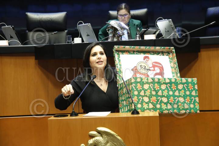 CIUDAD DE MÉXICO, 13DICIEMBRE2024.- La senadora panista Mayuli Latifa Martínez se manifestó en el estrado durante la sesión ordinaria de la Cámara Alta. FOTO: PRENSA PAN/CAURTOSCURO.COM