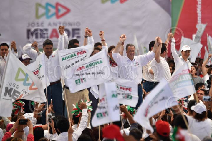 PUEBLA, PUEBLA, 22JUNIO2018.- El candidato del PRI a la presidencia de la república, José Antonio Meade, acompañó a Enrique Doger; candidato a la gobernatura de Puebla, a su cierre de campaña en evento realizado con Antorcha Campesina en el centro expositor de la ciudad de Puebla. FOTO: HILDA RÍOS/CUARTOSCURO.COM