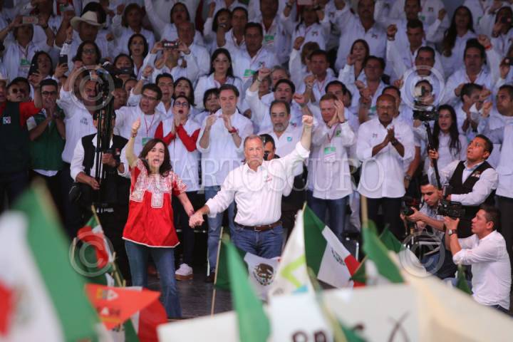SALTILLO, COAHUILA, 27JUNIO2018.- José Antonio Meade, acompañado de su esposa Juana Cuevas, realizó su cierre de campaña a la presidencia de México por el Patido Revolucionario Institucional. FOTO: ALEX RODRÍGUEZ /CUARTOSCURO.COM