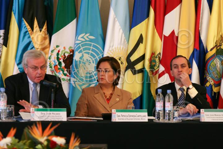MÉXICO D.F., 10SEPTIEMBRE2008.- Patricia Espinosa Catellano, titular de la Secretaría de Relaciones Exteriores (SER) está mañana, realizó la inauguración de la Primera Reunión Regional Sobre Mecanismos Internacionales de Asistencia Humanitaria, esto en las instalaciones de la secretaría. En la imagen es acompañada de John Holmes, Subsecretario para asuntos Humanitarios Coordinador de Emergencias de la ONU, y de Juan Manuel Gómez Robledo Subsecretario para asuntos Multilaterales y Derechos Humanos. FOTO: GUILLERMO PEREA/CUARTOSCURO.COM