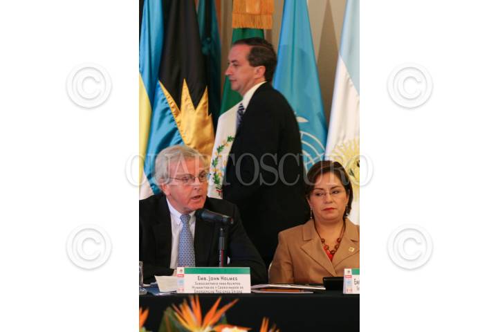 MÉXICO D.F., 10SEPTIEMBRE2008.- Patricia Espinosa Catellano, titular de la Secretaría de Relaciones Exteriores (SER) está mañana, realizó la inauguración de la Primera Reunión Regional Sobre Mecanismos Internacionales de Asistencia Humanitaria, esto en las instalaciones de la secretaría. En la imagen es acompañada de John Holmes, Subsecretario para asuntos Humanitarios Coordinador de Emergencias de la ONU. FOTO: GUILLERMO PEREA/CUARTOSCURO.COM