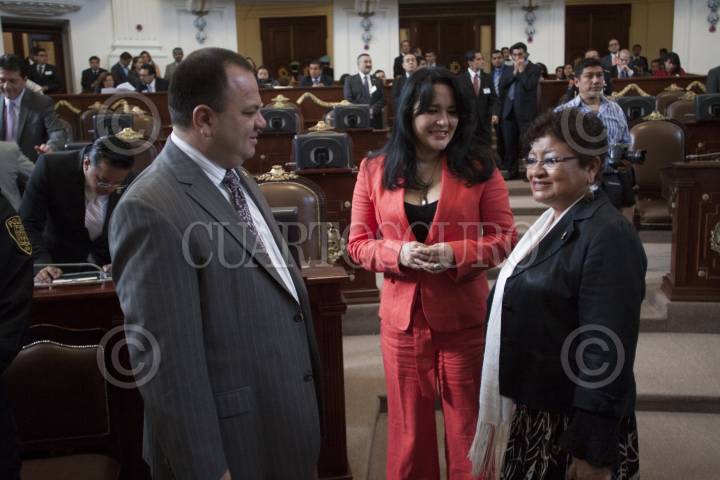 MÉXICO, D.F., 19MARZO2013.- Manuel Granados Covarrubias, presidente de la comisión de gobierno, conversa con la diputada del PT Miriam Saldaña Cháirez en la sesión solemne de la Asamblea Legislativa del DF en la cual se entrego la "Medalla al Mérito Policial". FOTO: MOISÉS PABLO /CUARTOSCURO.COM