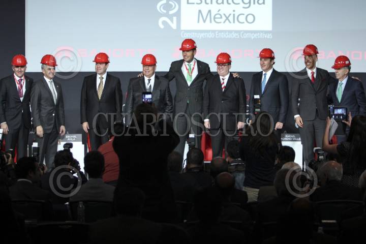 MÉXICO, D.F., 26AGOSTO2015.- Se llevo a cabo el Foro Banorte, Estrategia México 2015, construyendo Entidades Competitivas en un hotel ubicado en el centro de la ciudad. Exalcaldes de diferentes países y gobernadores mexicanos asistieron a mesas de dialogo para discutir estrategias de competitividad. En la imagen, Marcos Ramírez, Miguel Ángel Mancera, Eruviel Avila, Carlos Hank, Graco Ramírez, Rafael Moreno Valle y Joaquín López Doriga. FOTO: ISABEL MATEOS /CUARTOSCURO.COM