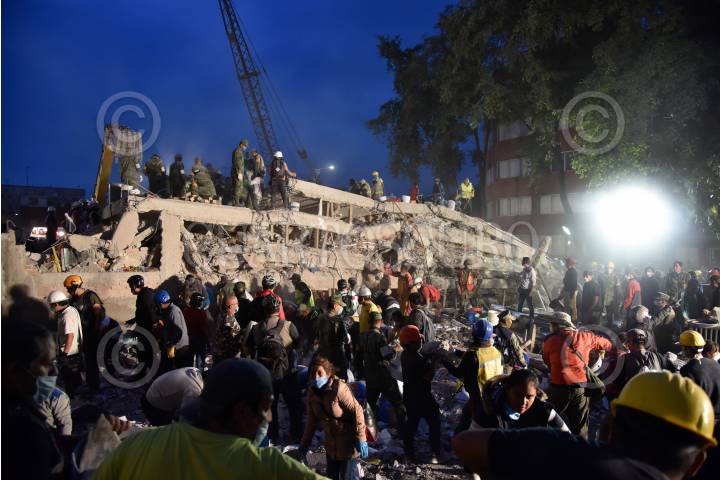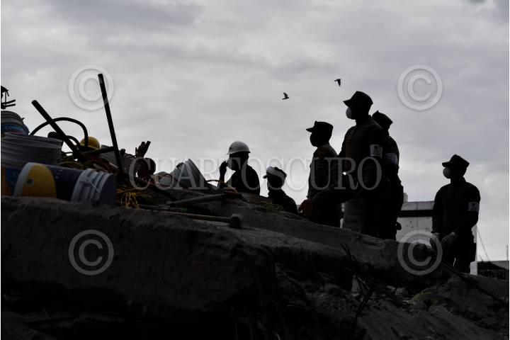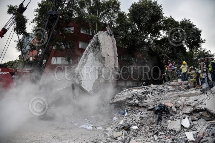 CIUDAD DE MÉXICO, 19SEPTIEMBRE2017.- Un edificio se colapsó entre las calles de Medellín y San Luis Potosí debido al sismo de 7.1 grados Richter con epicentro en Puebla. FOTO: MARIO JASSO /CUARTOSCURO.COM