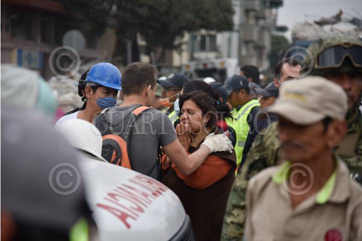 CIUDAD DE MÉXICO, 20SEPTIEMBRE2017.- Ciudadanos y cuerpos de rescate, continuaron con las labores en el edificio ubicado entre la avenida Torreón, Medellín y Viaducto. En la imagen una peresona espera noticias de su familiar desaparecido en el edificio. FOTO: MARIO JASSO /CUARTOSCURO.COM