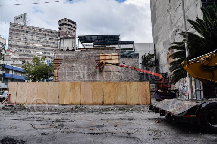 CIUDAD DE MÉXICO, 30SEPTIEMBRE2017.- Trabajadores realizan trabajados de reforzamiento en la estructura del edificio número 174, y limpieza de los escombros del edificio número 176, que se derrumbó debido al sismo de 7.1 grados del pasado 19 de septiembre. FOTO: MARIO JASSO /CUARTOSCURO.COM