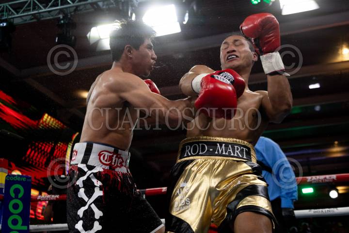 CIUDAD DE MÉXICO, 17AGOSTO2024. Los pugilistas Emiliano Aguillon y Luis Reyes Acatitla se enfrentaron en la categoria de peso medio durante la función de Box Azteca, que se llevó a cabo en las instalaciones de TV Azteca Ajusco. FOTO: EDGAR NEGRETE LIRA/CUARTOSCURO.COM