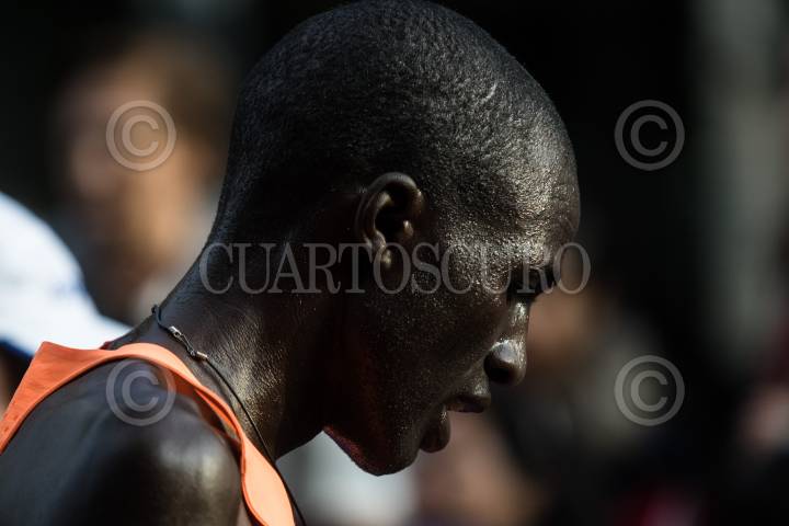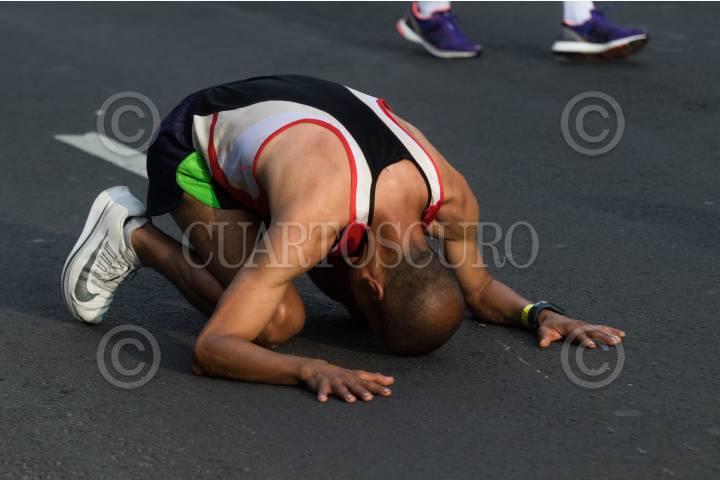CIUDAD DE MÉXICO, 28JULIO2019.- Un corredor bañado en sudor tras correr los 21 kilómetros del Medio Maratón BBVA, que partió del Monumento del Caballito al Ángel de la Independencia. FOTO: MOISÉS PABLO /CUARTOSCURO.COM
