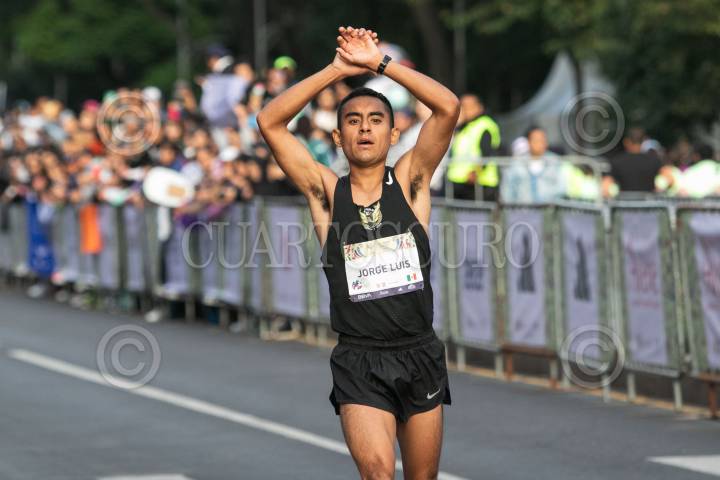 CIUDAD DE MÉXICO, 14JULIO2024.- Jorge Luis Cruz Pérez fue el tercer lugar del Medio Maratón de la Ciudad de México BBVA, que tuvo como punto de salida el Monumento del Caballito al Ángel de la Independencia. FOTO: MOISÉS PABLO/CUARTOSCURO.COM