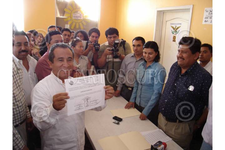 CHILPANCINGO, GUERRERO, 26MARZO2008.- Misael Medrano Baza, muestra su constancia de mayoria lo cual lo acredita como el nuevo dirigente estatal del PRD, entregada por integrantes de la Comision Tecnica Electoral. FOTO: OSCAR ALVARADO/CUARTOSCURO.COM