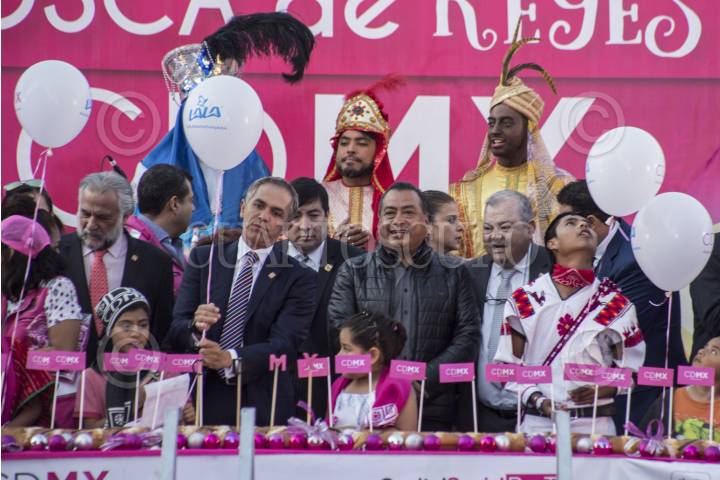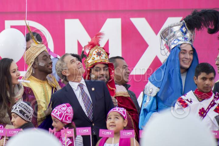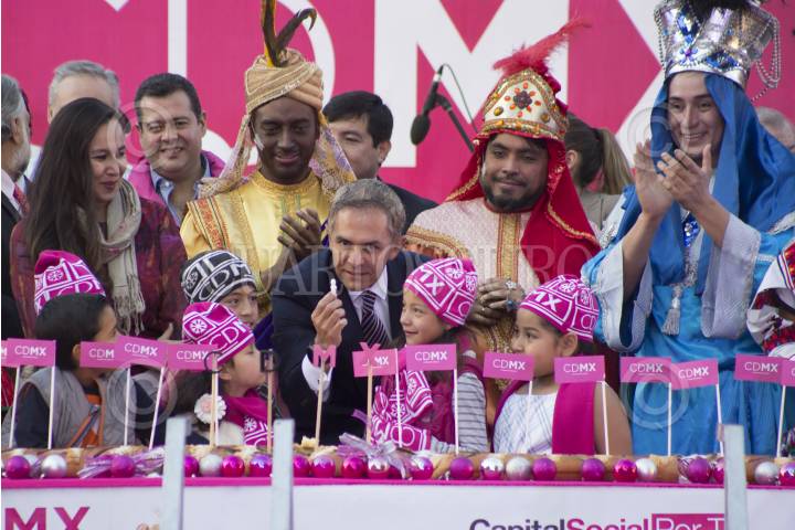 CIUDAD DE MÉXICO, 05ENERO2016.- Miguel Ángel Mancera, jefe de gobierno de la Ciudad de México, encabezó el evento de la mega rosca de reyes magos en el Zócalo capitalino. FOTO: TERCERO DÍAZ /CUARTOSCURO.COM