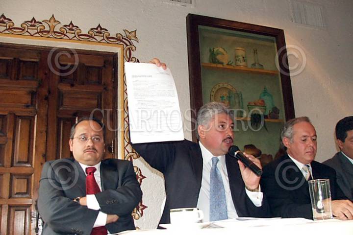 MÉXICO, D.F. 01AGOSTO2006.- El secretario de Gobernación, Carlos Abascal, durante la conferencia de prensa en la que llamó al jefe de Gobierno local, Alejandro Encinas, a garantizar el orden en la capital de la República. FOTO: CUARTOSCURO.COM