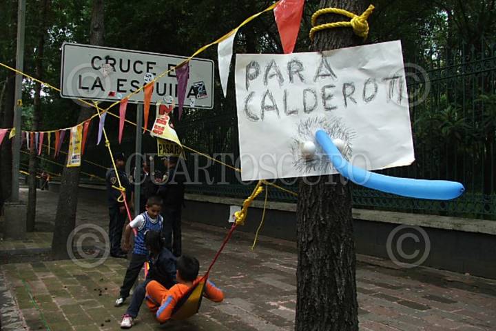 MEXICO, D.F., 02AGOSTO2006.- Niños juegan en una hamaca en las aceras de Reforma, que permanece cerrada desde el domingo por el plantón que instalaron simpatizantes de Andrés Manuel López Obrador. FOTO: Saúl López/CUARTOSCURO.COM