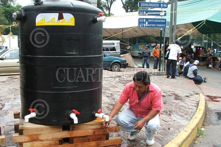 MEXICO, D.F., 02AGOSTO2006.- Simpatizantes de Andrés Manuel López Obrador, que permanencen en plantón desde el domingo sobre Reforma, han instalado tinacos con agua para satisfascer sus necesidades. FOTO: Saúl López/CUARTOSCURO.COM