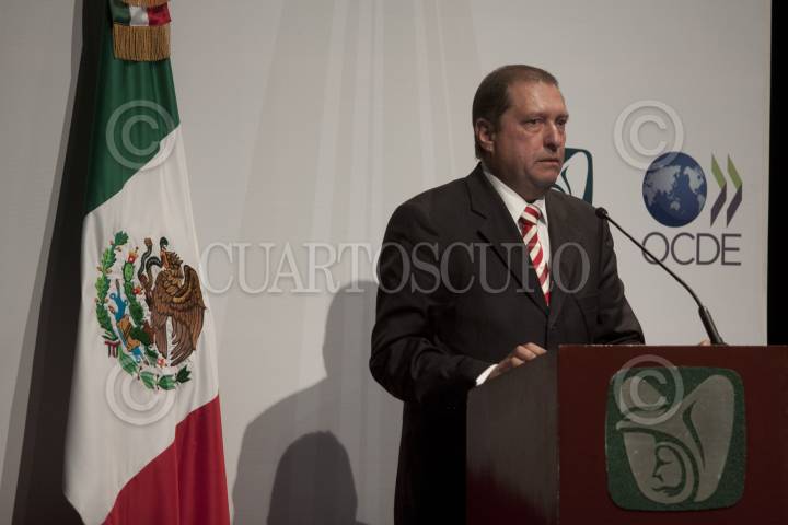 MÉXICO, D.F., 11ENERO2012.- Rafael Morgan Ríos, secretario de la Función Pública, durante la presentación del estudio sobre la contratación pública "Aumentar la eficiencia e integridad para una mejor asistencia médica", en el auditorio Moisés Callejas de la sede del instituto. José Ángel Gurría, quien participó en el evento, reconoció que aunque el Instituto Mexicano del Seguro Social (IMSS) registró avances en la transparencia del ejercicio de sus recursos públicos, aún persisten actos de colusión y corrupción de servidores públicos. FOTO: MOISÉS PABLO/CUARTOSCURO.COM