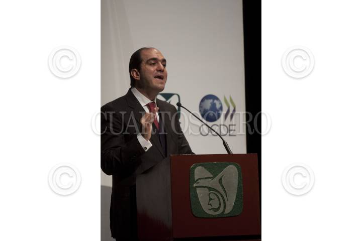 MÉXICO, D.F., 11ENERO2012.- Daniel Karam Tomeuh, director del IMSS, durante la presentación del estudio sobre la contratación pública "Aumentar la eficiencia e integridad para una mejor asistencia médica", en el auditorio Moisés Callejas de la sede del instituto. José Ángel Gurría, quien participó en el evento, reconoció que aunque el Instituto Mexicano del Seguro Social (IMSS) registró avances en la transparencia del ejercicio de sus recursos públicos, aún persisten actos de colusión y corrupción de servidores públicos. FOTO: MOISÉS PABLO/CUARTOSCURO.COM