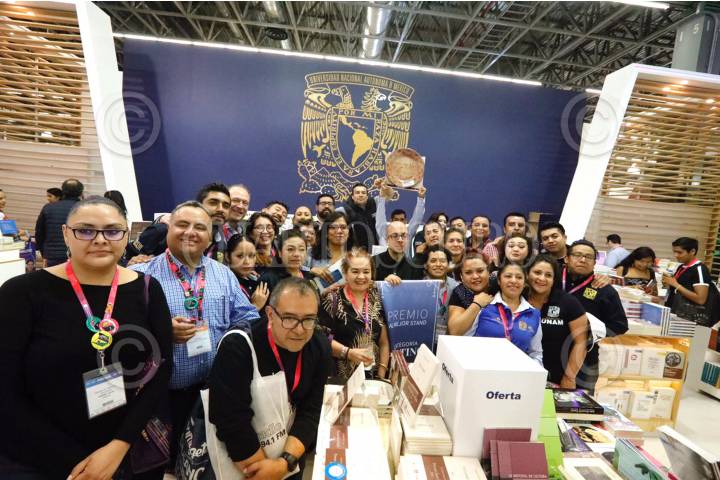 GUADALAJARA, JALISCO, 03DICIEMBRE2019.- La Universidad Nacional Autónoma de México obtuvo el premio al mejor estand, en la categoría Platino, en la Feria Internacional del Libro (FIL) de Guadalajara 2019, el encuentro editorial y literario más importante en el mundo de habla hispana. Es la tercera ocasión que la UNAM recibe este reconocimiento, pues en 2013 y 2016 también se hizo acreedora a la distinción que otorga la Feria a esos montajes. El coordinador de Difusión Cultural, Jorge Volpi, agradeció el reconocimiento a nombre del rector, Enrique Graue Wiechers, y felicitó al equipo de la Dirección General de Publicaciones y Fomento Editorial, quienes hicieron posible el pabellón. El jurado, integrado por diseñadores, arquitectos, empresarios y profesores, decidió premiar a esta casa de estudios en la vigésima quinta edición del concurso, luego de evaluar criterios como diseño, distribución del espacio, funcionalidad, impacto visual, originalidad y vialidad. FOTO: UNAM /CUARTOSCURO.COM
