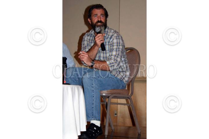 VERACRUZ, VERACRUZ 28OCTUBRE2005.- El actor y director, Mel Gibson, ofrecio una rueda de prensa ante medios nacionales e internacionales en un conocido hotel del puerto de Veracruz, donde dio detalles sobre su pelicula "Apocalipto", que rodara en locaciones de los Tuxtlas y que ser· filmada totalmente en lengua Maya. FOTO: Isaac Aguilar/CUARTOSCURO.COM