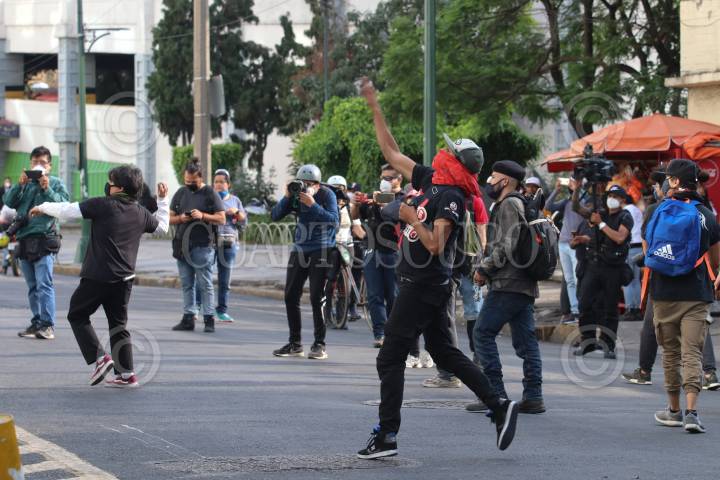 Decenas de encapuchados llegaron a la Fiscalía General de la Justicia (FGR) para exigir justicia por Melanie, mujer de 15 años, quién fue agredida por los policías en la manifestación del viernes pasado