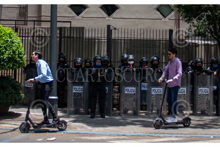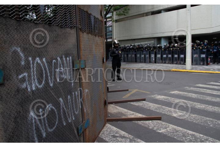 Las vallas rodearon la casa Jalisco para resguardarla de la manifestación programada para esta tarde. Policías resguardaban las inmediaciones