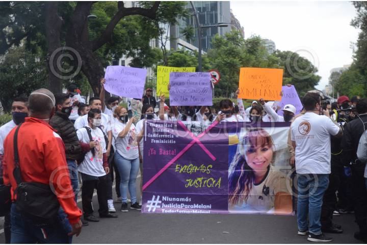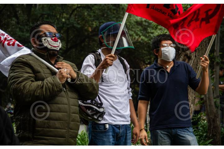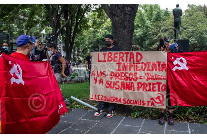 Jóvenes durante la manifestación frente a la Casa representación de Jalisco para exigir justicia para los jóvenes Geovanni de Jalisco y Melanie, joven agredida por policías durante manifestación el sábado pasado