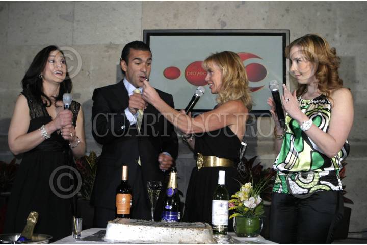 MÉXICO D.F., 04MARZO2008.- Ana Saldaña, Deby Breard y Brenda Jaet conductoras del programa Magazine acompañado de Luis Armando Melgar director general del canal televisivo Proyecto 40 celebraron su primer año al aire. FOTO: SAUL LOPEZ/CUARTOSCURO.COM