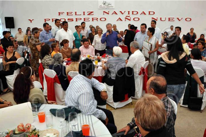 VILLAHERMOSA, TABASCO, 21DICIEMBRE2010.- Andrés Granier Melo, gobernador de Tabasco, realizo un convivió con vecinos que habitan en la colonia donde se ubica la casa de gobierno local "Quinta Grijalva", donde los regalos sorpresas no se hicieron esperar. El gobernante disfrutó con los lugareños de una comida de fin de año y aprovechó para desear una navidad y feliz año nuevo. FOTO: CUARTOSCURO.COM