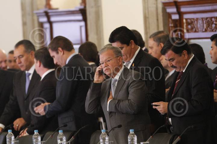 MÉXICO, D.F., 16DICIEMBRE2011.- Ándres Granier Melo, gobernador de Tabasco, y Mariano González Zarur, gobernador de Tlaxcala, durante los trabajos de la primera sesión extraordinaria del Consejo Nacional de Seguridad Pública, en el Palacio Nacional. FOTO: MOISÉS PABLO/CUARTOSCURO.COM