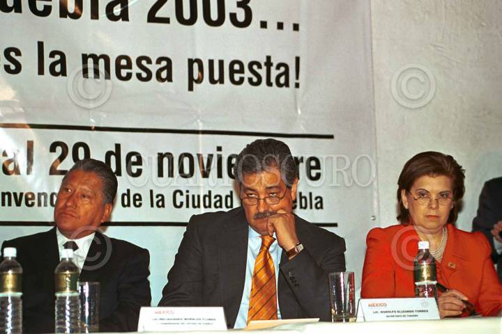 Melquíades Morales, gobernador de Puebla, Rodolfo Elizondo, secretario de Turismo y Sari Bermúdez directora de CONACULTA, anunciaron en conferencia de prensa las actividades del V Congreso sobre Patrimonio Gastronómico y Turismo Cultural que se llevará a cabo en Puebla. FOTO: Eunice Adorno/CUARTOSCURO.COM