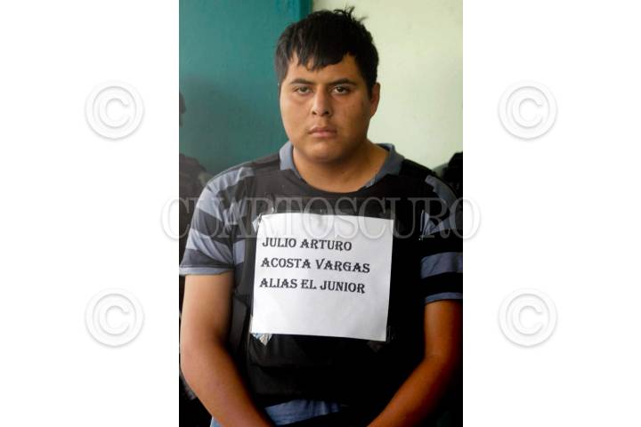 VILLAHERMOSnA, TABASCO, 23DICIEMBRE2009.- Cuatro presuntos responsables del asesinato de los familiares del marino Melquisedet Angulo Córdova quien muriera en la balacera de Cuernavaca con Arturo Beltran Leyva. Fueron presentados por Policías Judiciales Ministeriales en las instalaciones de la Policía Judicial ante decenas de periodistas que estaban en el lugar. FOTO: MARCO POLO GUZMÁN HERNÁNDEZ/CUARTOSCURO.COM