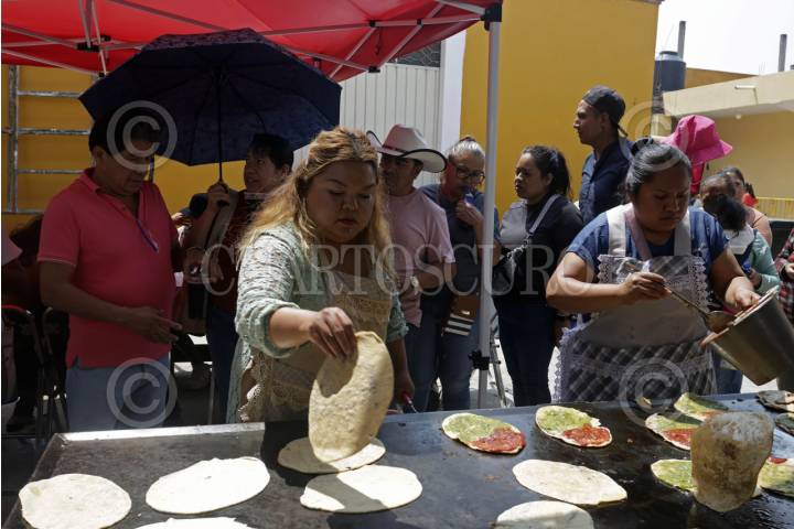 PUEBLA, PUEBLA, 23ABRIL2025.- Más de 200 cocineras participaron en la tradicional Feria de la Memela 2025, la cual se lleva a cabo en la parroquia de la junta auxiliar de la Resurrección. FOTO: MIREYA NOVO/ CUARTOSCURO.COM