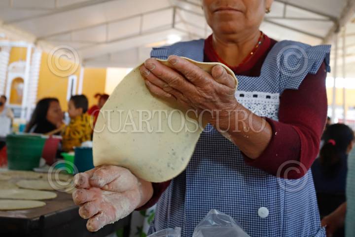 Pobladores de La Resurrección, junta auxiliar de Puebla, participaron en el Festival de la Memela, en el cual se regalaron más de 100 000 piezas a manera de agradecimiento durante su fiesta patronal.