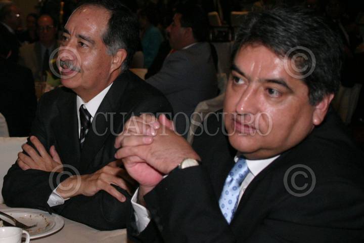 MEXICO, D.F. 12JULIO2005.- El subprocurador de la PGR Carlos Javier Vega Memije, y el titular de la SIEDO Jose Luis Santiago Vasconcelos, durante el festejo anual de la Comunidad Juridica Nacional; realizado en el Centro Libanès. FOTO: Osvaldo Aguilar/CUARTOSCURO.COM